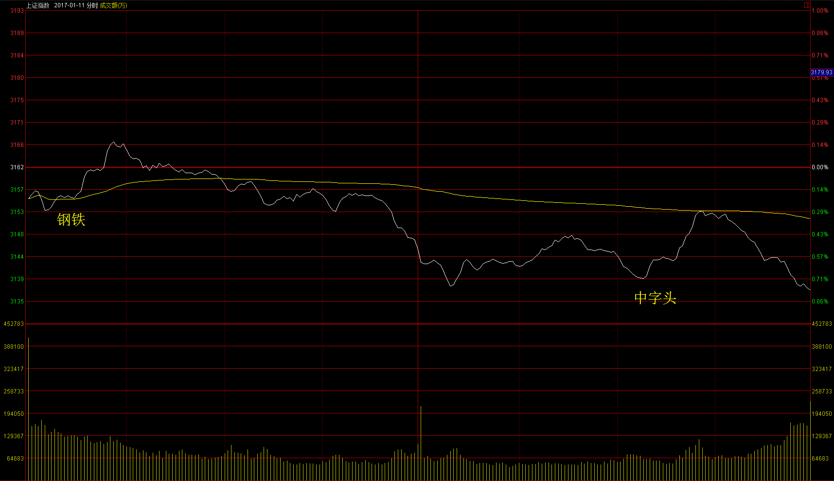 1月11日周三两市低开后震荡下行,尾盘快速回落。早盘钢铁、地方国改,超跌反弹个股活跃,午后中字头有异动,庄股活跃。收盘沪指下跌0.79%,创业板下跌0.72%。早盘超跌反弹个股较活跃,特别是有重组概念的力源信息(300184)、王子新材(002735)、东土科技(300353)。山西国改的太钢不锈(000825)因圆珠笔头国产化概念3天2板,并带动博威合金(601137)打板。