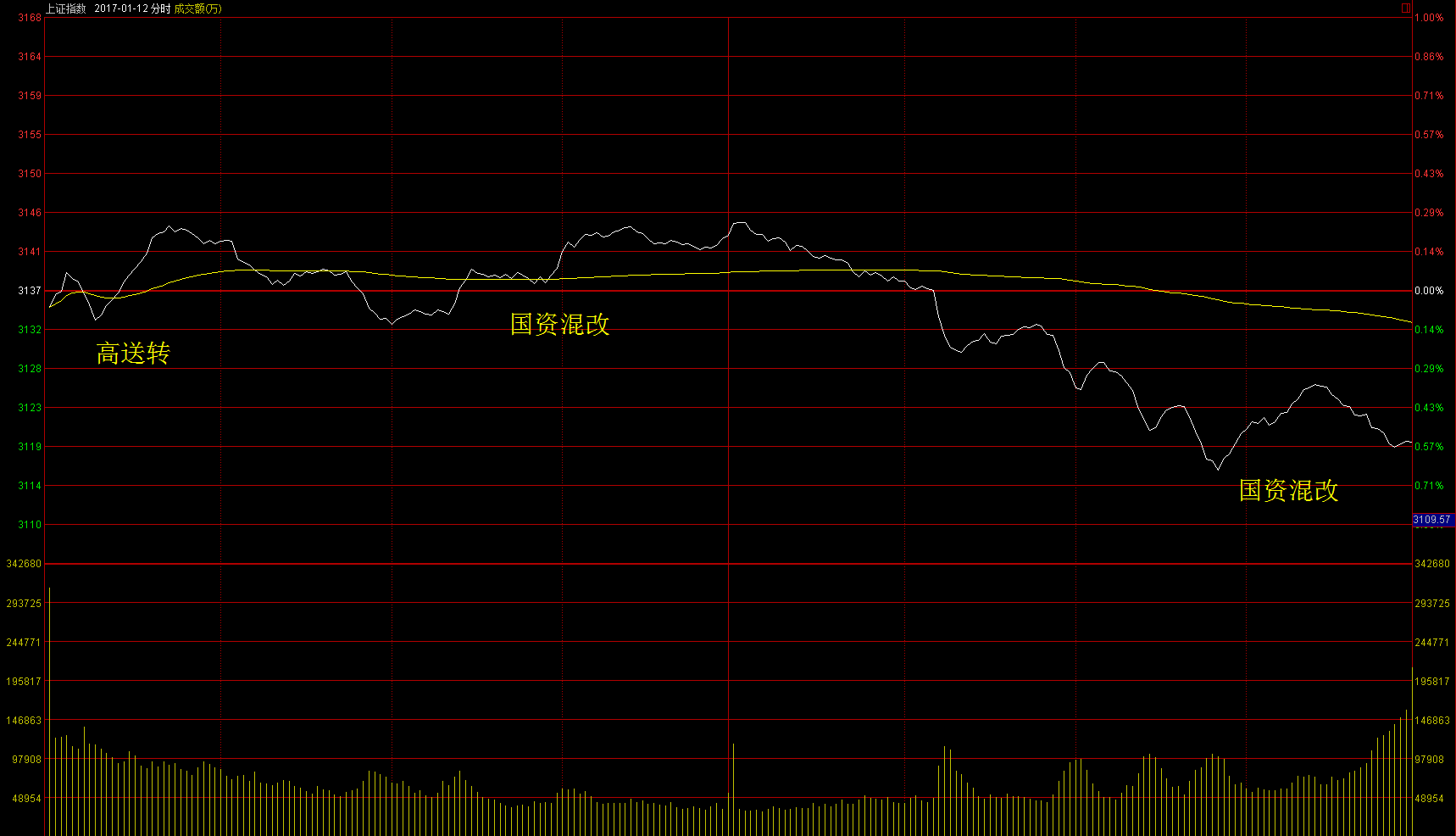 1月12日周四两市低开后早上横盘震荡,午后快速下跌。早盘高送转、地方国改,庄股活跃,午后市场继续下跌,没有热点。收盘沪指下跌0.56%,创业板下跌0.38%。市场缺乏热点,庄股有所活跃。东方新星(002755)、闽东电力(000993)3天2板。年报高送转乐心医疗(300562)、赛摩电气(300466)、雄帝科技(300546)打板。地方混改有所表现,上海的亚通股份(600692)、安徽的海螺型材(000619)、天津的天房发展(600322)打板。
