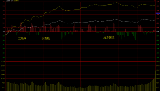1月18日周三两市低开沪指横盘震荡,创业板震荡下行。早盘庄股,国资混改活跃,午后钢铁股拉升、虚拟现实概念超跌反弹,次新股出现跌停股。收盘沪指上涨0.14%,创业板下跌1.18%。早盘地方国改的海螺型材反包涨停,市场挖掘近期有涨停的地方国改股票,西部建设(002302)作为龙头二连板,其他热点股票有西仪股份(002265)、亚通股份(600692)、青松建化(600425)、中水渔业(000798)、同力水泥(000885)、方大特钢(600507)、柳钢股份(601003)一拖股份(601038)。庄股今日继续表现,龙头新亚制程(002388)5天4板。