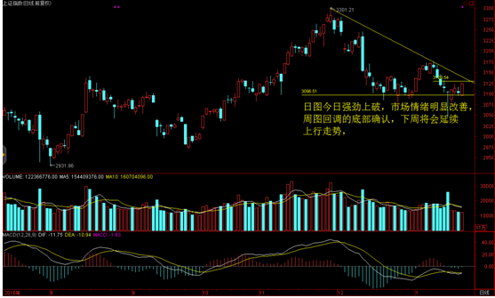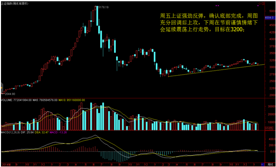 本周上证空头力量得以释放,在3050处企稳,翻转向上,尽管市场情绪在春节前趋于谨慎,但还是有不断的资金面、政策面利好释放出来。对于中线交易者来说,这正是提前布局,然后节后等待坐轿的时机。具体板块可以重点关注军工、地方混改、年报和高送转板块精选个股操作。