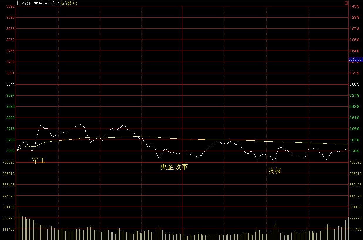 12月5日周一受周末监管层对险资举牌表态的利空下大幅低开,沪指单边下行,创业板冲高回落。早盘军工较活跃,午后央企改革、填权活跃,中字头和举牌股大跌。高送转龙头易事特(300376)第五板。填权股煌上煌(002695)第一板。军工混改概念中航三鑫(002163)打板,题材渐热。