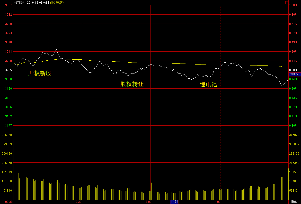 12月6日周二沪指低开后弱势横盘整理,创业板高开后单边下行,尾盘快速跳水。早盘股权类、石油、次新股活跃,午后水泥、锂电池活跃。股权转让龙头英力特(000635)打板,前期妖股也打板。庄股龙头同力水泥(000885)打板。
